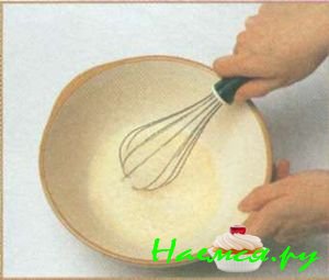 2. Взбейте вместе яйца, ванильный сахар и соль. В другой миске смешайте рубленые орехи и муку. Отставьте обе миски в сторону.