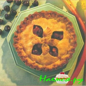 2. Раскатайте шар в круг толщиной 3 мм. Переложите в форму для пирогов диаметром 23 см и подровняйте края, чтобы тесто на 1 см свисало по бокам формы. Смажьте корж яичной глазурью.