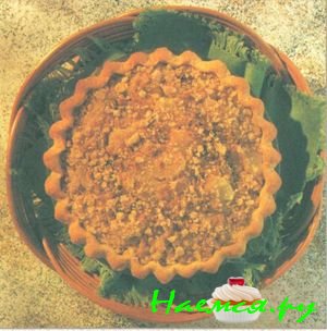 1. Для коржа просейте муку и соль в миску. Добавьте масло и жир и вмешайте пальцами до консистенции крупных хлебных крошек. Вилкой вмешайте немного воды, чтобы связать тесто. Скатайте его в 2 шара, заверните в полиэтиленовую пленку и поставьте в холодильник на 20 минут.