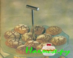 3. Вручную разделите смесь на 20 одинаковых порций. Обваляйте их в большом количестве сахарной пудры, затем выложите на выстланный бумагой для выпечки противень. Поставьте в духовку и пеките 12 минут. Печенье должно немного зарумяниться, но все же остаться довольно бледным и тягучим в центре. Дайте полностью остыть, прежде чем подавать к столу или переложить в герметичный контейнер.