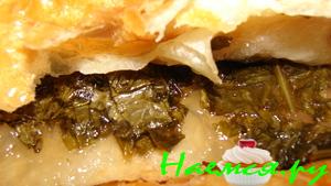 Яйцо взболтать с молоком, смазать этой смесью края. Квадраты с начинкой свернуть в виде треугольников. Положить на противень, обмазать яйцом. Выпекать в духовке при температуре 180 градусов 20 минут.