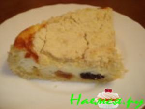 Сверху начинки выложить промытый и предварительно замоченный в кипятке на 5 минут изюм, орехи вперемешку.