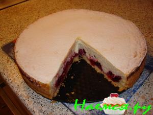 Хорошенько размешать нашу начинку и вылить на пропекшуюся песочную основу. Выровнять поверхность.