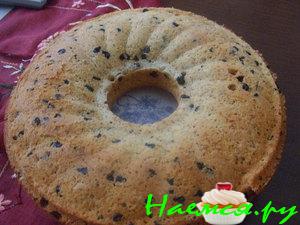 В смазанную растительным маслом форму вылить тесто. Выпекать в духовке при 170 градусах до готовности. Вынуть. Дать 10 минут остать в форме. Вытащить. Посыпать какао и украсить ягодами.