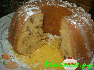 Продолжая взбивать всыпаем муку с орехами, тщательно вымешать.