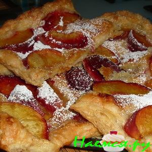 Охлаждённое тесто раскатать и разрезать на квадраты со стороной 10 см, положить на тесто фаршированный персик, края квадрата соединить над персиком.