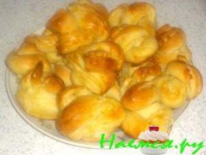 Раскатываем тесто в не тонкий пласт,нарезаем полосы шириной 5-6 см,а полоски на прямоугольники длиной 6 см.