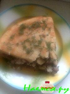 Выпекать пирог 20 мин. Когда верх зарумянится, накрыть фольгой и выпекать ещё 20-25 мин.