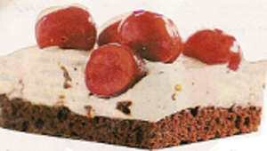 2. Желатин отжать и распустить на теплой водяной бане. Добавить 2 ст. ложки творожного крема. Быстро ввести желатиновую смесь в творожную массу. Поставить в холодильник и дать массе немного затвердеть. С вишни слить сироп.