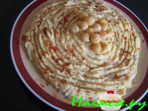 В блендере измельчить нут и очищенные зубчики чеснока...до консистенции пюре.