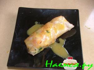 В рисовую бумагу заворачивать по столовой ложке фарша, делая закрытые со всех сторон рулетики. Склеивать края яичным белком.