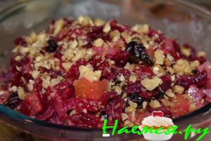 Верхний слой должен быть из свёклы, на него выжать сок 1 лимона и налить 3 ст.л. воды.