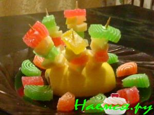 Лимонные кружочки выложить на блюдо, каждый ломтик посыпать тертым сыром, затем тертым шоколадом (чем больше, тем вкуснее).