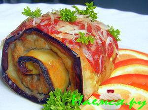 Баклажановые рулетики с помидором и сыром