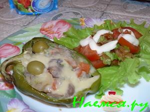 перцы разрезать пополам, оставив плодоножки , и удалить семена.