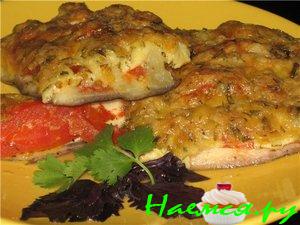 Фаршированные половинки баклажана положить на протевень кожурой вниз.