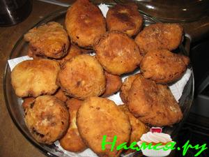Готовые пирожки складывать на тарелку с бумажным полотенцем и накрыть крышкой.