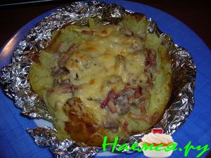 Разминаем мякоть вилкой, не до самой кожуры, оставляем пару мм.