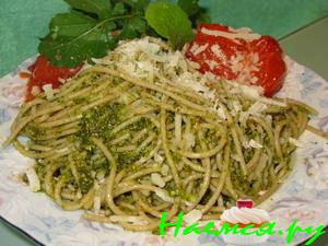 дать слегка остыть и соединить с желтками.сыром и песто.