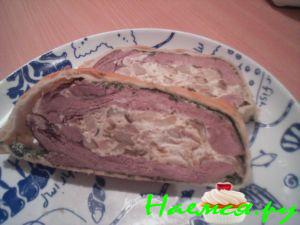 Готовый язык окунуть в холодную воду и очистить от шкурки.