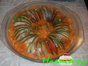 На разогретом масле обжарить баклажаны и лук до мягкости.