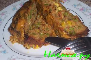 В форму для кексов или любую другую (я брала одноразовую из фольги)выложить слой фарша на дно формы, затем слой сыра и накрыть фаршем.