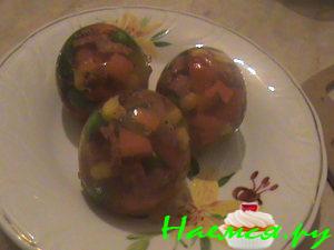 распустить желатин(поплотнее чтоб легче чистить яйца)
