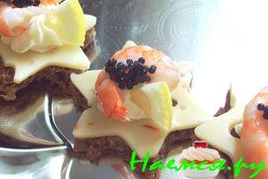 Хлеб вырезала формочкой для печенья,намазала маслом, затем паштетом,из зелёной оливки и половинки чёрной маслины сделала жёлудь,на шпажку надела половинку черри-листик петрушки-жёлудь