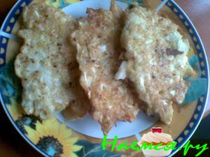 Слегка взбиваем яйцо с водой (молоком), обмакиваем заготовки, затем обваливаем в панировке. Жарим на растительном масле с двух сторон до золотистой корочки.