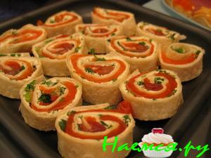 Смешать творожный сыр с измельченным укропчиком и пропущенным через чеснокодавилку небольшим кол-вом чеснока