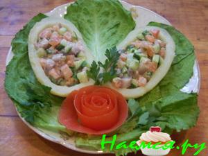 Ракушки наполнить полученным фаршем и поставить на 30 мин. в холодильник.