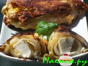 2. Выложите противень бумагой для запекания и поместите на нее цикорий карамелизованной стороной вверх. Слегка посолите и поперчите.