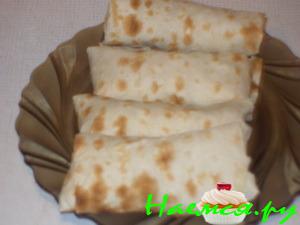 8. Для удобства лучше всего начать сворачивать сначала самые длинные края подготовленного лаваша, после чего полностью скрутить его рулетом.